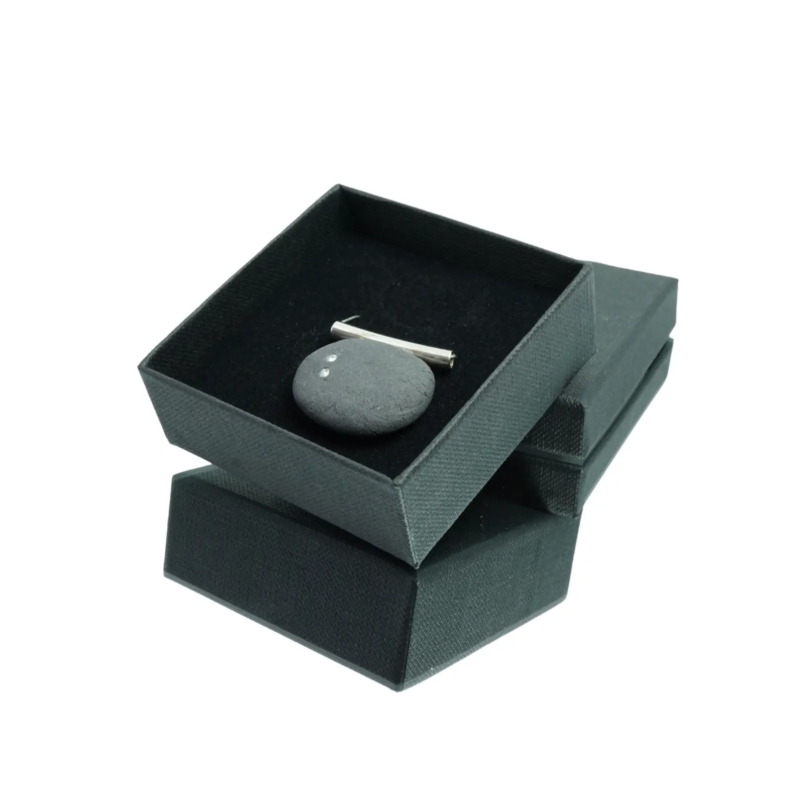 Pakabukas „Akmuo“ – minimalistinis, tačiau simboliškas rankų darbo juvelyrikos dirbinys, sukurtas iš juodojo porceliano ir sidabro. Jis primena glotnų jūros nugludintą akmenį – tylų, bet stiprų, laiką ir istoriją talpinantį objektą.