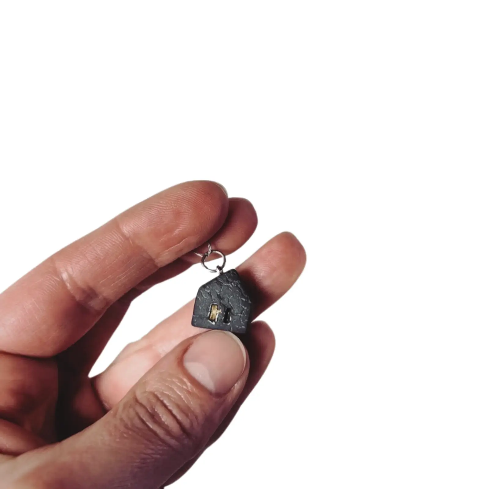 Pakabukas „Namelis” – mažas, bet unikalus. Rankų darbo porcelianinis pakabukas – lyg minimalistinė architektūrinė skulptūra, nešiojama šalia širdies, jungia miesto formų griežtumą ir namų leitmotyvo šventumą.
