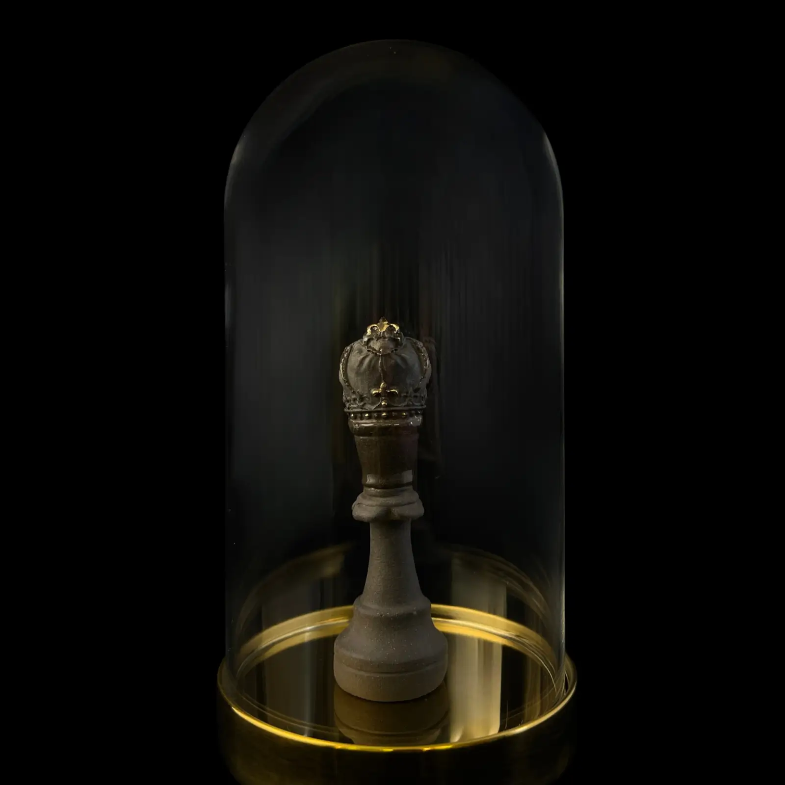 Išskirtinė rankų darbo šachmatų figūrėlė su galimybe suasmeninti. Išskirtinė dovana šachmatų meistrui ir entuziastui. Gali būti komplektuojama su stikliniu gaubtu.