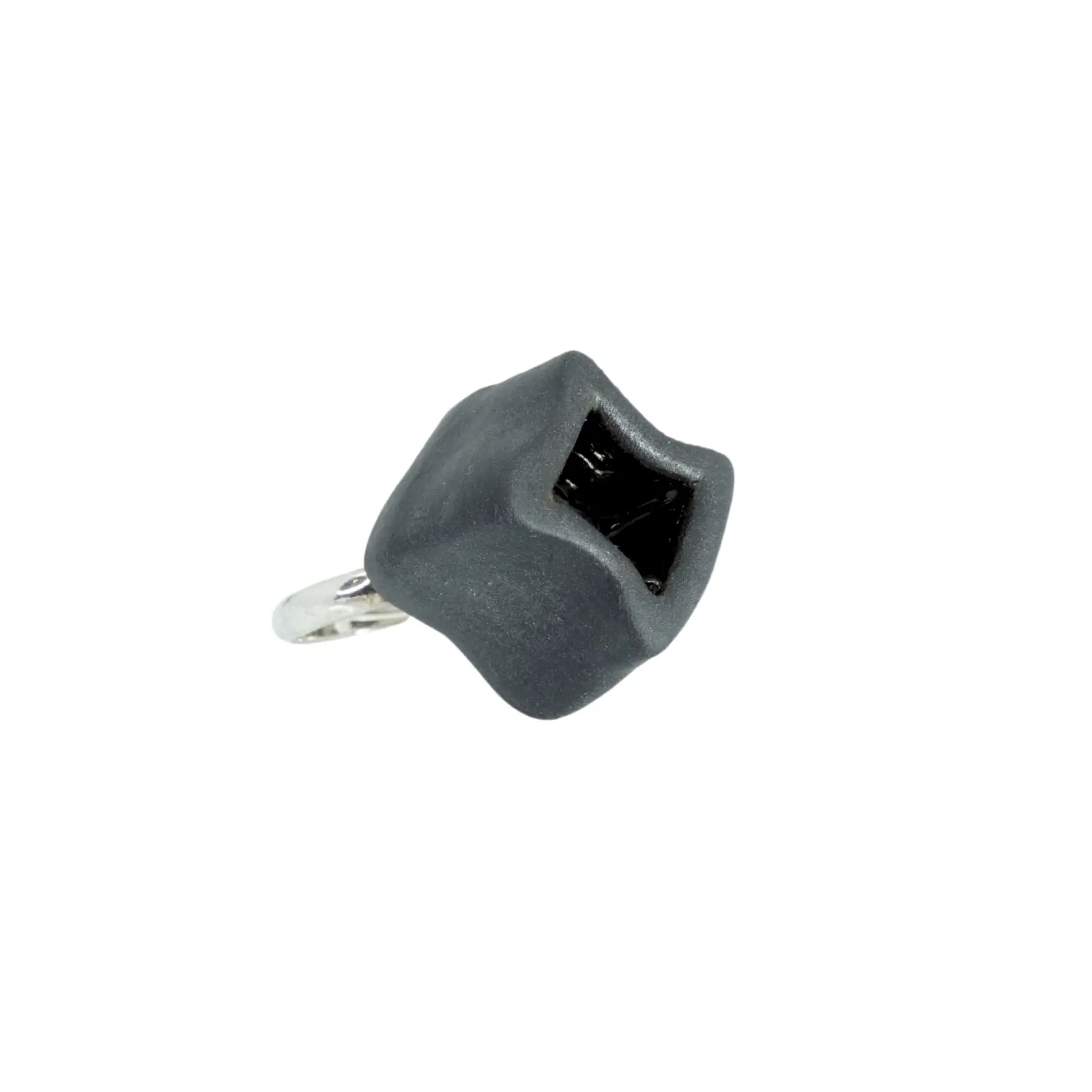 Drąsos ir elegancijos manifestas. Šis žiedas skirtas moteriai, kuri nebijodama išskirtinumo renkasi masyvias, tačiau harmoningas formas. Rankų darbo porceliano detalė, savo struktūroje slepianti subtilią minimalizmo natą, o viduje – platinos švytėjimą, kuris traukia žvilgsnį ir kviečia įsižiūrėti atidžiau.